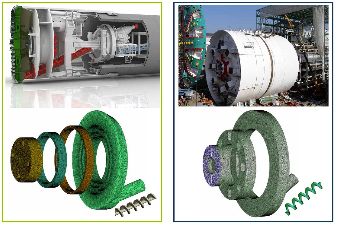 Mechanized tunneling is a highly automated construction process that has proven itself to be suitable for use in a wide range of different geological and hydrological conditions. Its application ranges from urban tunnels driven below sensitive structures with low ground cover to deep alpine tunnels characterized by large ground pressures and high overburdens. Earth Pressure Balance (EPB) shield machines are widely used in mechanized tunneling of soft and mixed ground in recent years due to their applicability in an increasingly large range of ground conditions and lower cost compared to slurry shields. In the tunneling operation with EPB shield machines, the excavated soil is used as the support medium to maintain the stability of the tunnel face. During the excavation process, the property of the in-situ ground in front of the cutterhead is modified by injecting conditioning materials in front of the cutterhead before it is excavated and transported into the pressure chamber through the openings on the cutterhead. The soil paste circulates inside the chamber by the stirring action of the cutterhead rotator arms and a number of rotating as well as fixed mixing arms. It is then discharged out of the chamber towards the back-up trailer through the conveyor system under the control of the rotating screw. [1]