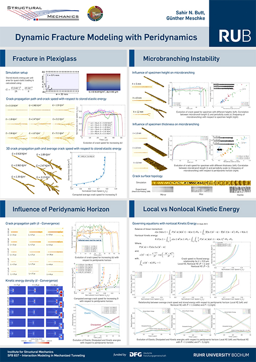 The Poster entitled „Dynamic fracture modeling with Peridynamics“, co-authored by Sahir N. Butt and Günther Meschke, won the Best Poster Award at the Workshop on Experimental and Computational Fracture Mechanics in Louisiana, USA in February 26-28, 2020.